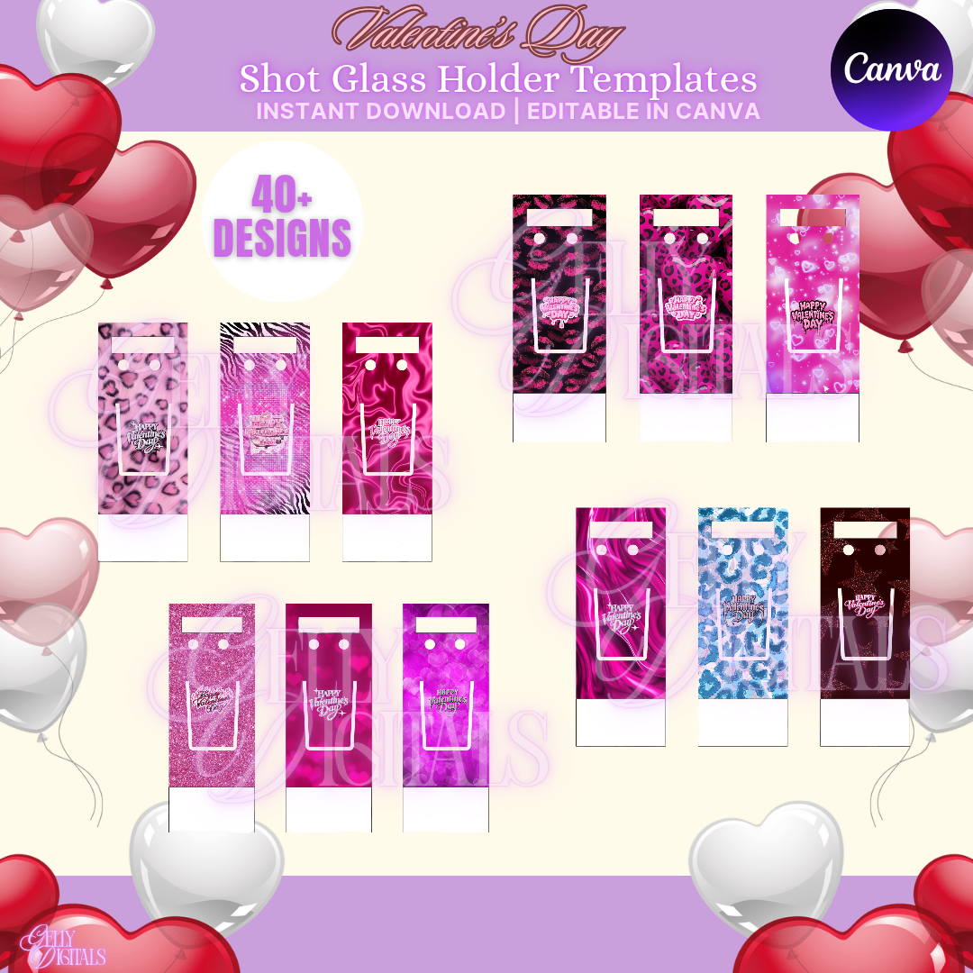 Elevate your Valentine’s Day gifts and shop drops with our Valentine’s Day Shot Glass Holder Templates! Designed for crafters, small business owners, gift shops, and packaging lovers — these holders add premium presentation and aesthetic flair to shot glass gifts.