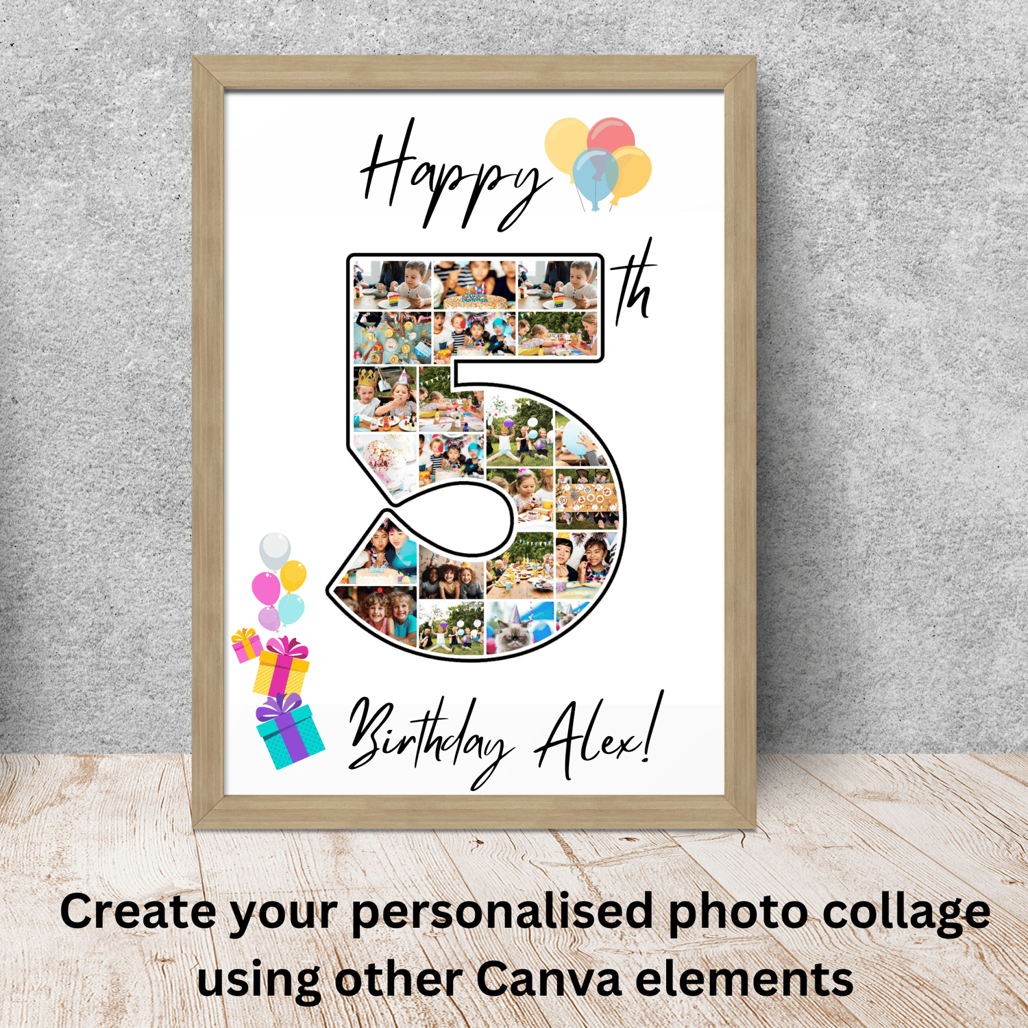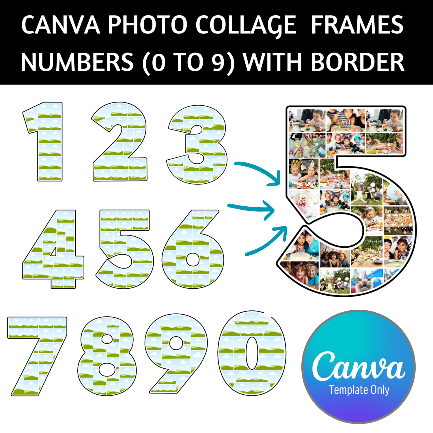digital download, custom photo collage, Canva templates, editable template canva, editable photo collage template, photo collage template canva, collage wall art, editable number shapes, svgs, digits, DIY project ideas, number collage.