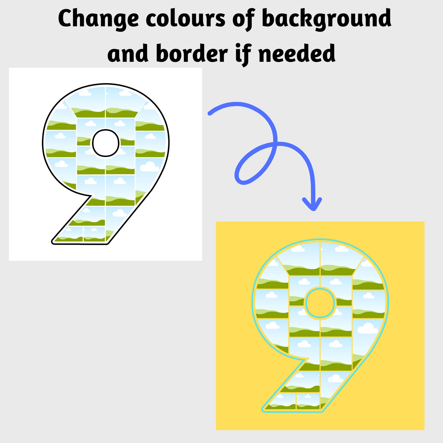 You will receive all numbers, 0 to 9, which includes borders. These digits are only editable in Canva and can be used to easily drag and drop your best images into each of the frames. You can combine numbers together if needed. You can change the colour of the borders outlining each number and and the background if you want. You can even add other Canva elements together with these custom number-shaped frames to create your very own personalised artwork.