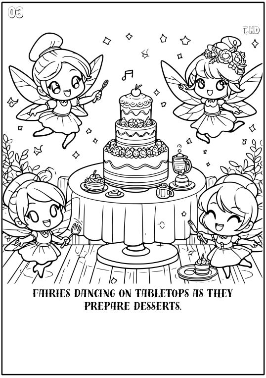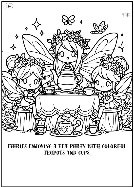 - Adorable illustrations of fairies engaging in delightful activities in a cafe setting, such as baking, brewing coffee, and making smoothies