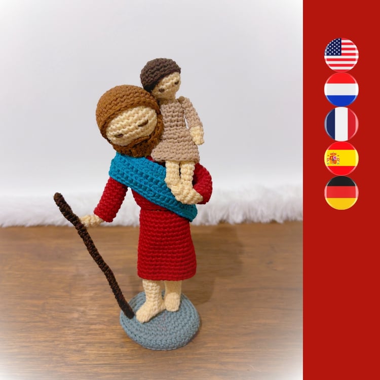 You will also need: stuffing, scissors, stitch markers, sewing pens, pencil, glue, glue gun, cutting pliers, 5mm thick cardboard, yellow or white sewing thread, 1 cotton bud, flat back 8mm black doll eyes, 10x20mm cross, 3mm beads, letter beads, aluminum/floral wire