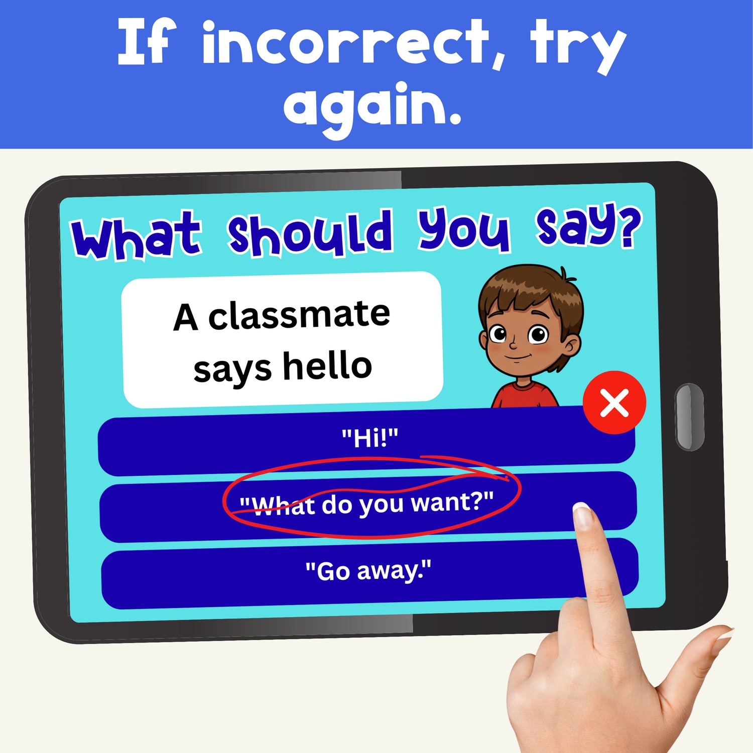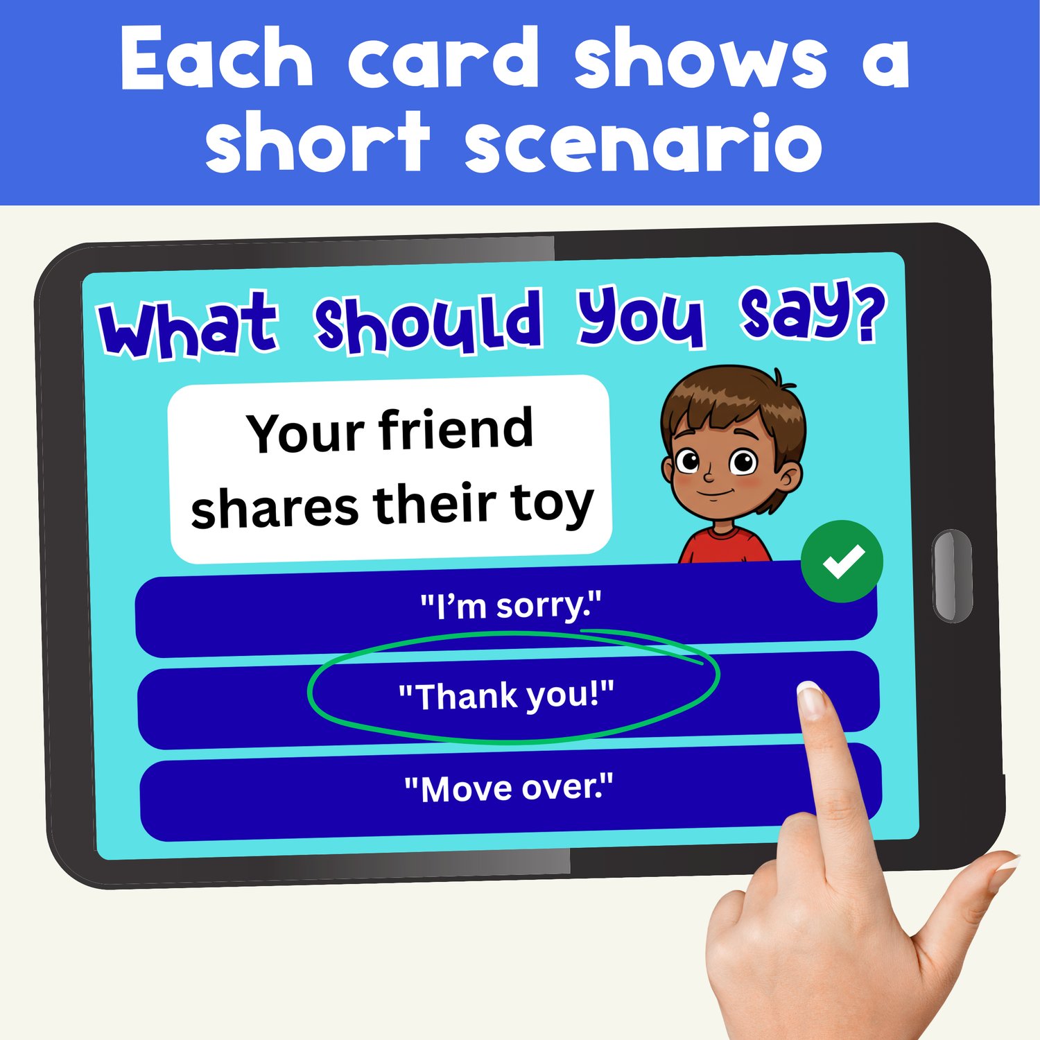 Students will read short, everyday situations and choose the most appropriate thing to say. Perfect for practicing functional conversation skills, self-advocacy, and social thinking in a visual, accessible format.