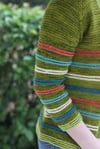 You could easily use leftovers for all the stripes, or just make this a two-color sweater. If you are working a size that just bumps up to the next number of MC skeins needed, you should be ok with just the extra yardage from the mini skein of the MC in the set.
