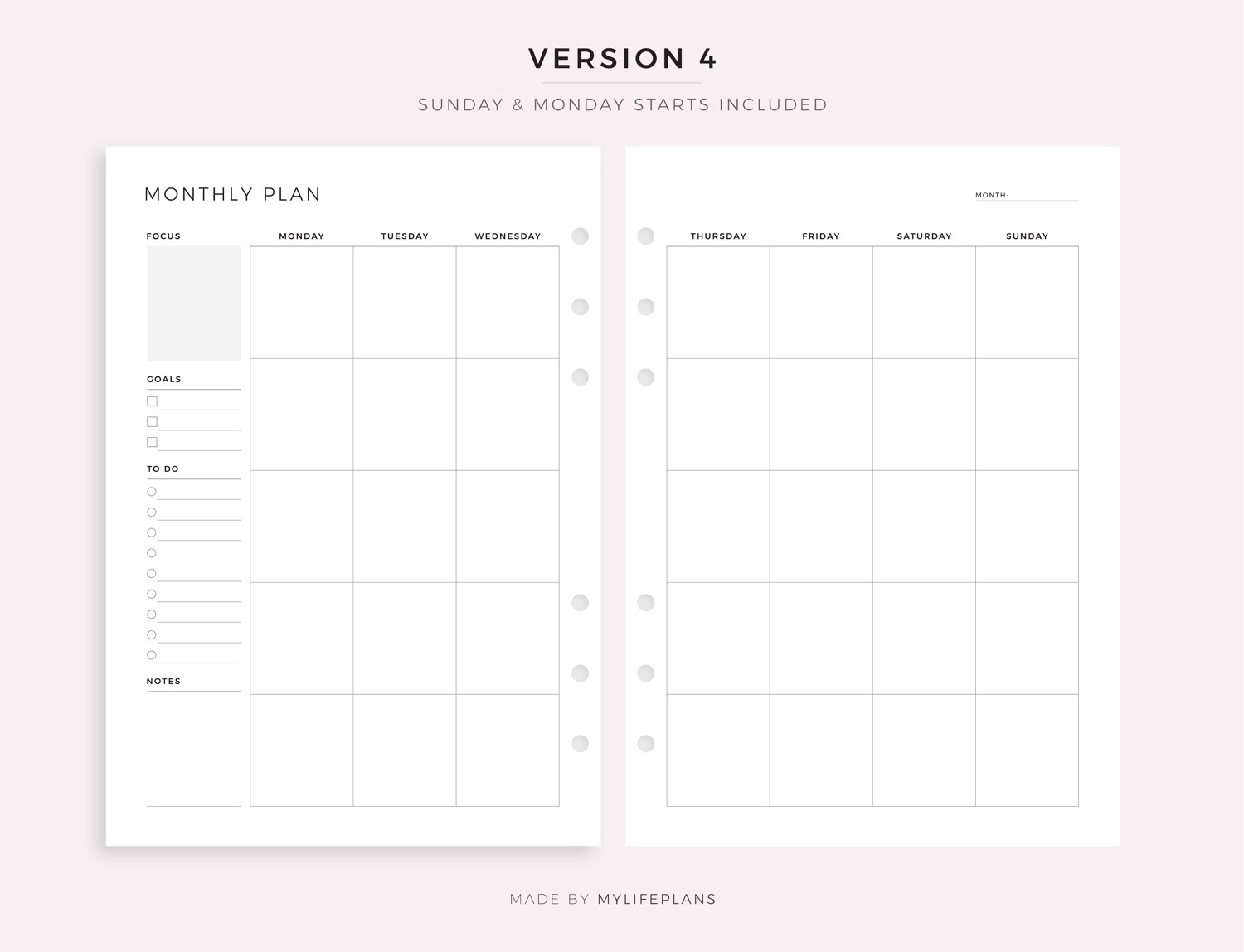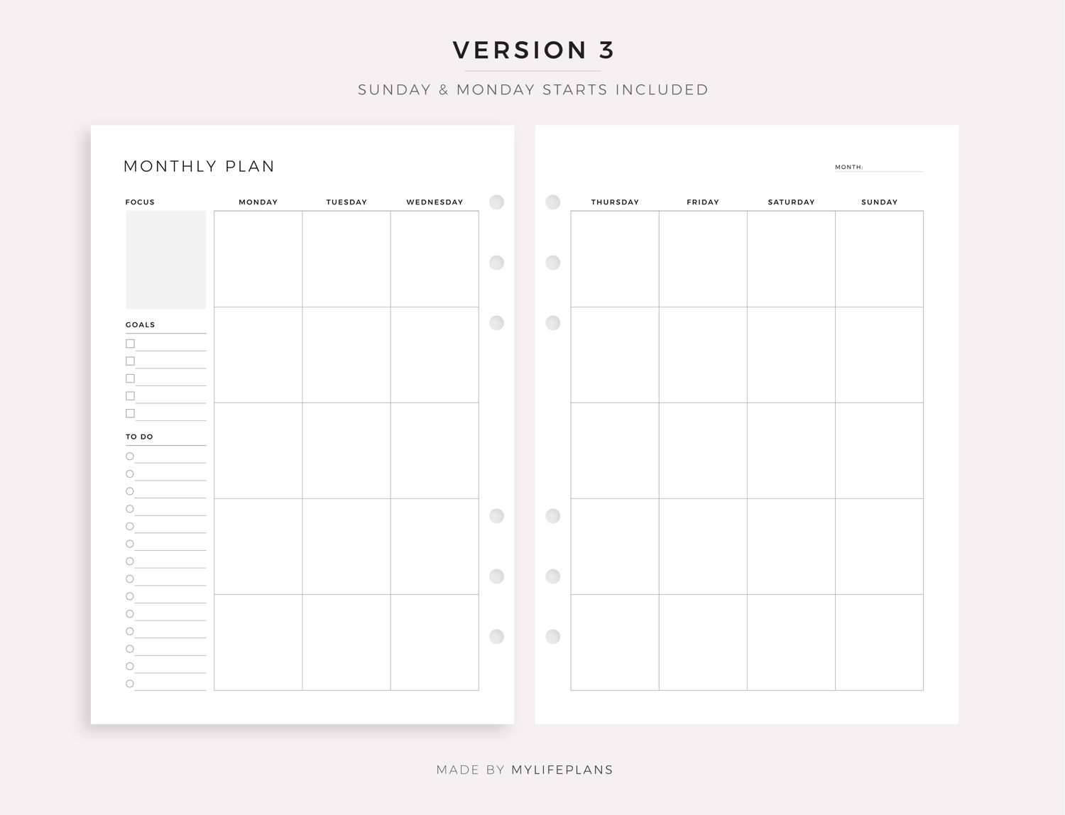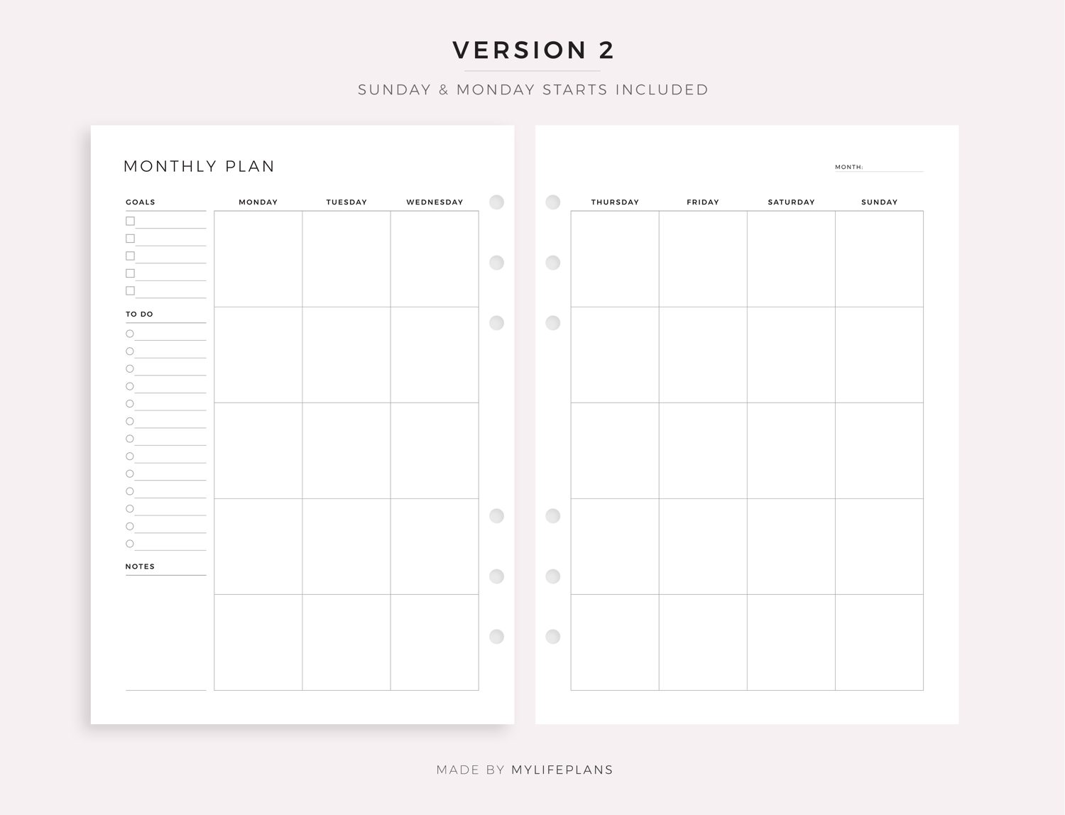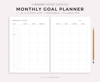 This is a printable monthly goal planner on two pages — just download, print, and start using it right away.