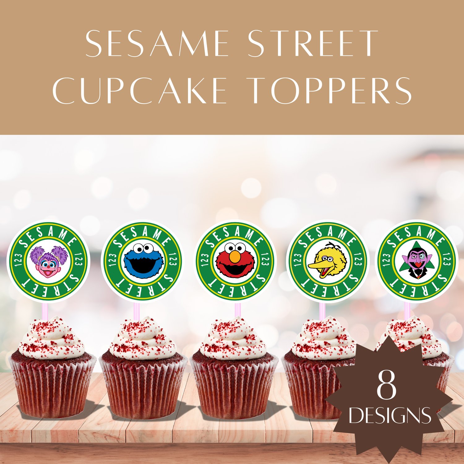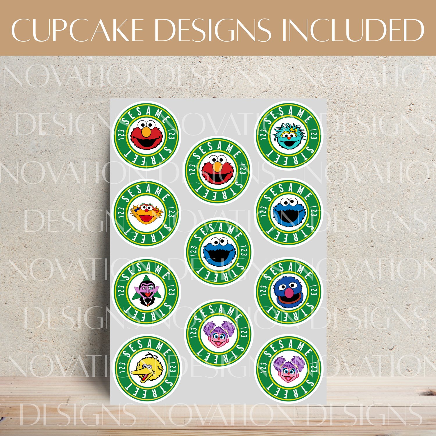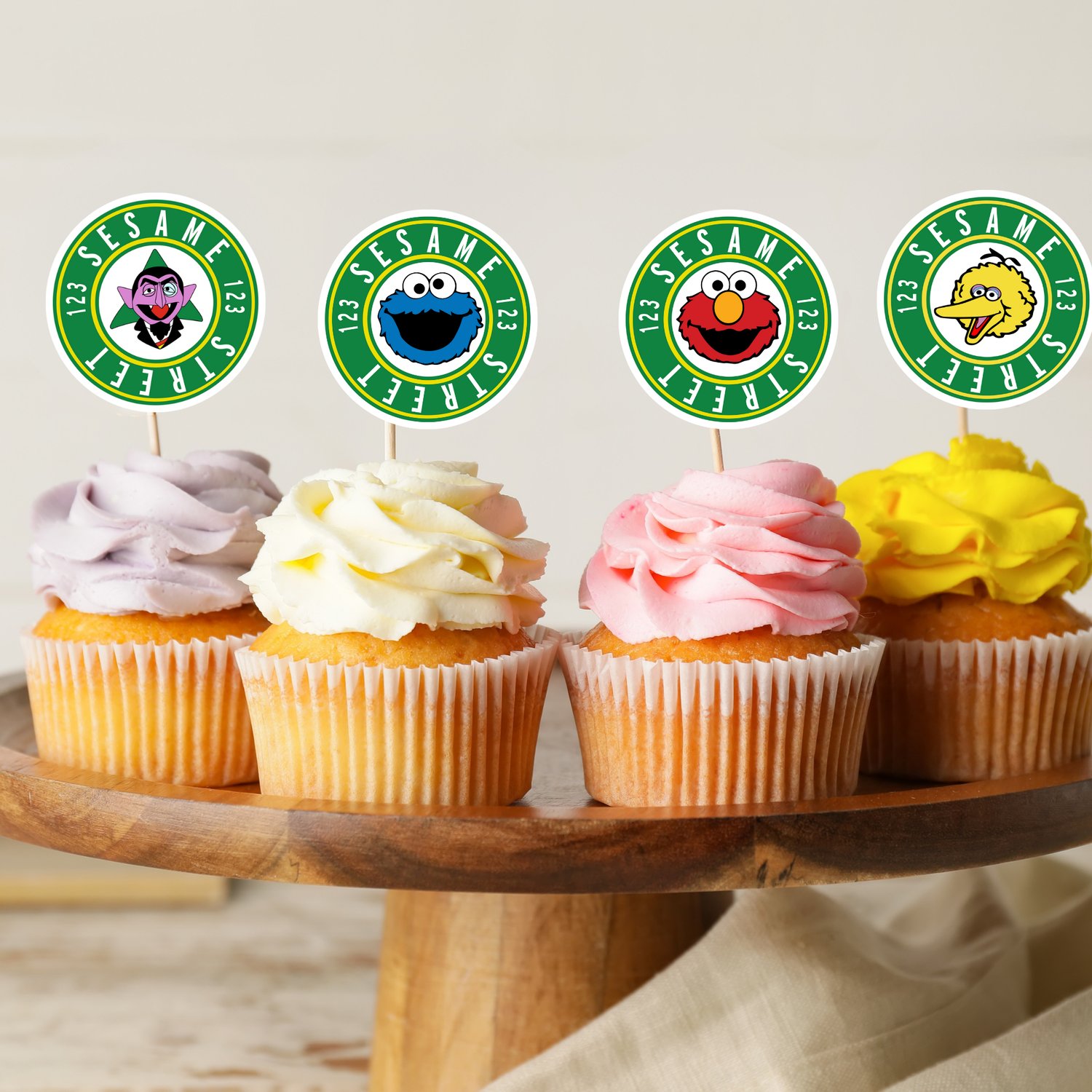 - High-resolution JPG file with multiple Sesame Street character toppers