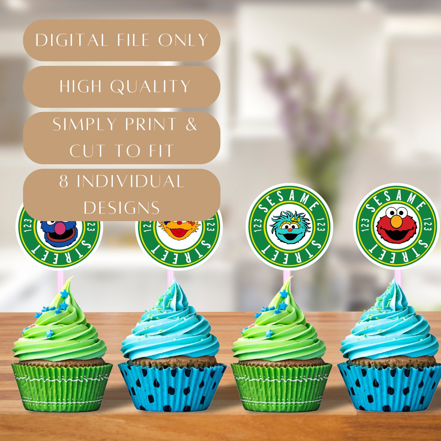 Place them into cupcakes, treats, centerpieces, or anywhere you want a little extra Sesame Street magic!