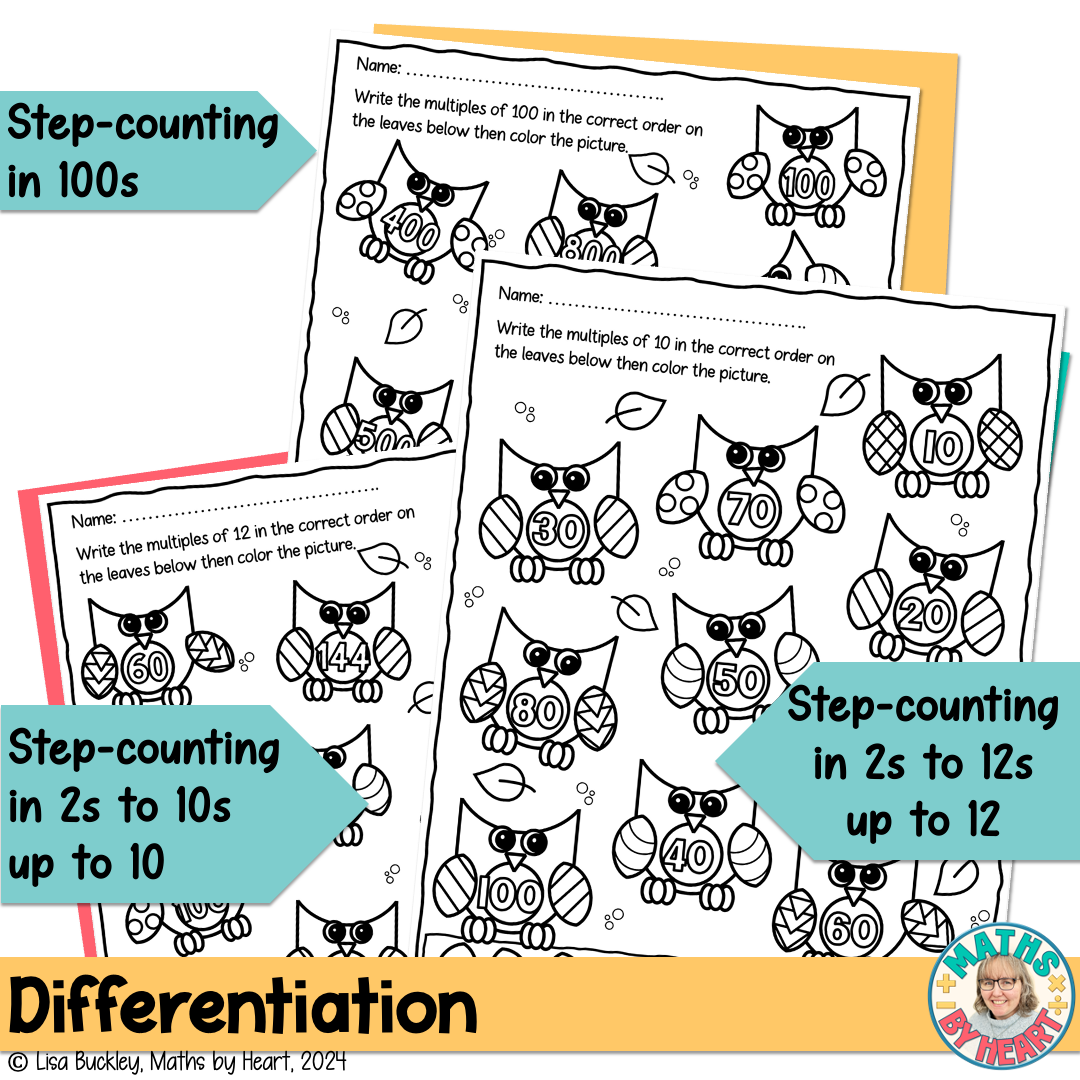 • The core practice of this resource is reinforcing skip-counting. By featuring clear multiples alongside the colouring designs, students can practice skip counting in a fun and engaging way.