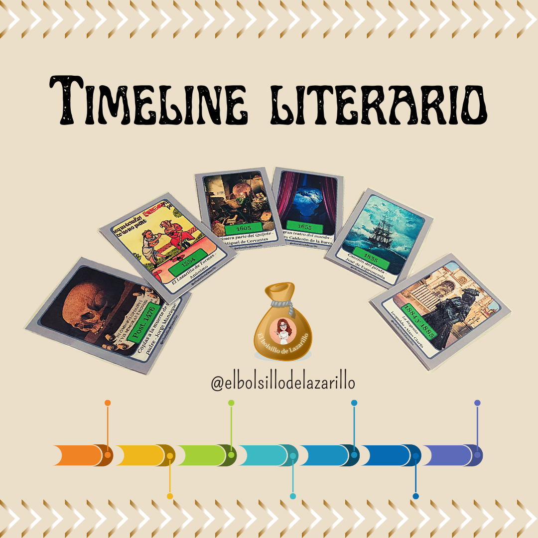 ¡Hola, lazarillos y lazarillas!¿Qué mejor modo de hacer un breve repaso por la literatura que jugando al Timeline? Como buena fan de los juegos de mesa que soy, he creado este Timeline literario con la finalidad de acercar la literatura a nuestros jóvenes de una manera lúdica.