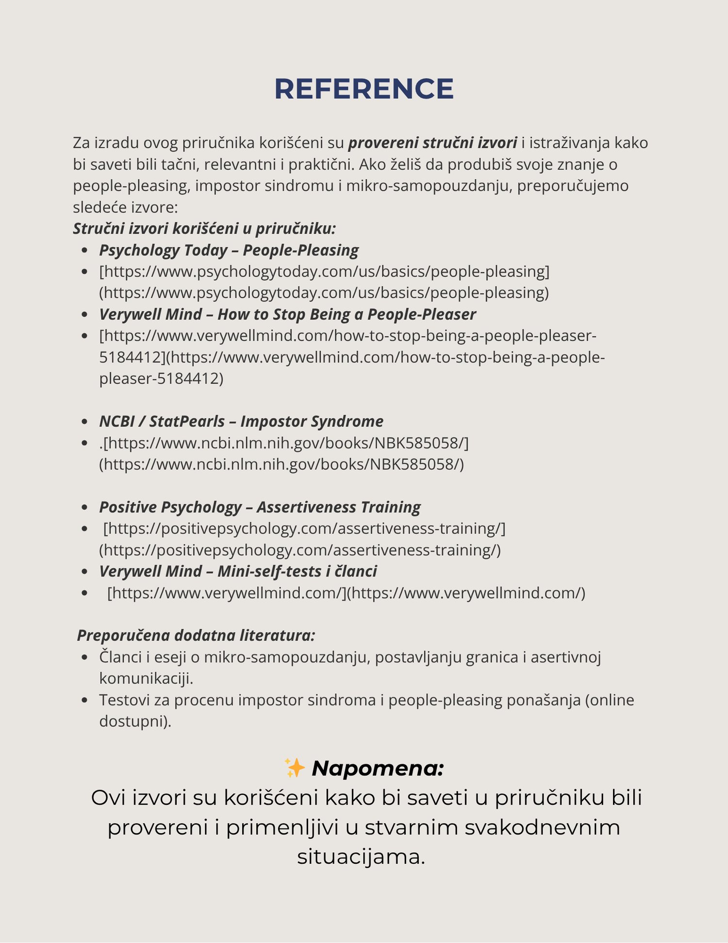 - Spisak literature i stručnih izvora iz psihologije, koučinga i komunikacije