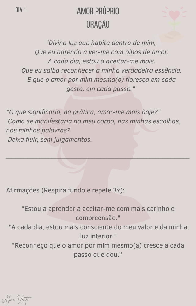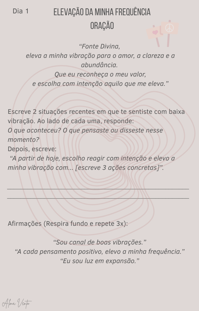 Ao longo de 7 dias, serás guiado por práticas diárias de gratidão, autoconhecimento e exercícios práticos para transformar a tua mentalidade e a tua realidade. Prepara-te para libertar-te do que te impede de avançar e dar espaço às mudanças que desejas ver na tua vida.