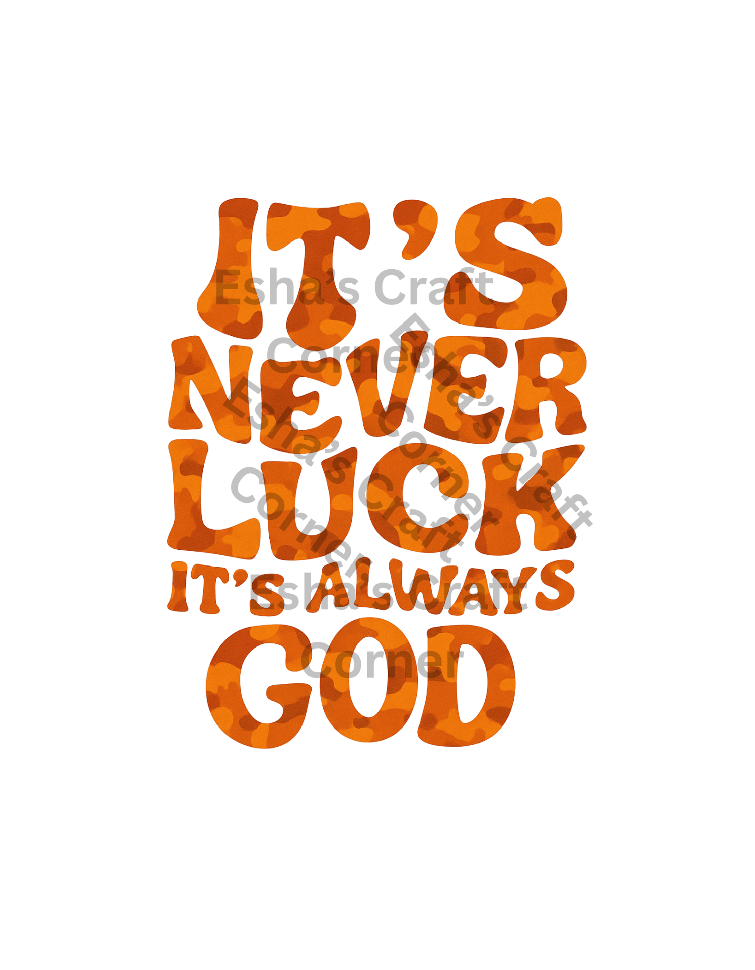 Show your faith boldly with our “It’s Never Luck, It’s Always God” Camouflage Shirts! ✨