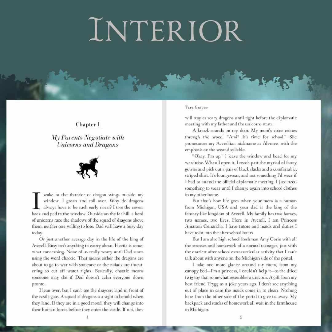Amy lives both in our world and in the fantasy world of Averell, struggling to balance homework and her duties as a fairytale princess negotiating the intricacies of unicorn-dragon politics. When her high school crush stumbles through the portal to Averell in her family’s basement, she sets out with her shape-shifting unicorn best friend to find him before he dies or sparks a war.