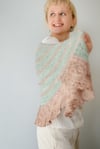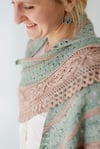The sample shawl is worked in two contrasting colors but would look equally beautiful when knit in just one.