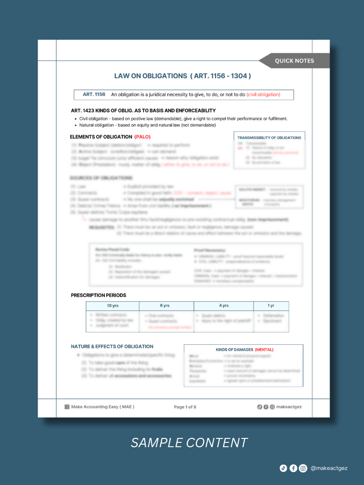 ✔ Law on Obligations & Contracts ( 1 PDF file - 12 pages )