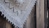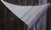 Meera uses a top-down classic triangle construction with eyelet lace all over the body and some twisted ribbing for the border and a pronounced picot edging for finishing touches.