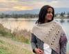 Laya is a 2-color shawl that starts by casting on a few stitches at one tip and is increased at one edge to make an asymmetrical wrap. The body of the shawl alternates between soothing garter and sweeping mesh short rows. A second color is introduced midway but the same established tempo of garter and mesh continues.