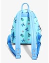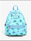 All you need to do the happy hula is a little hand-eye coordination and a dance partner—found on this mini backpack from Loungefly! Stitch shows off his moves on this bright blue faux leather mini backpack featuring an allover Lilo & Stitch-inspired print, interior lining with a matching silhouette pattern, an enamel brand badge, silver-tone hardware, and adjustable straps. There's plenty of space to keep your peanut butter sandwiches, Scrump doll, bathing suit, and other island essentials in the main compartment, front zip pocket, and side pockets! A BoxLunch Exclusive! Approx. 8" W x 10" H x 4 1/2" DPolyurethane; polyester liningImported