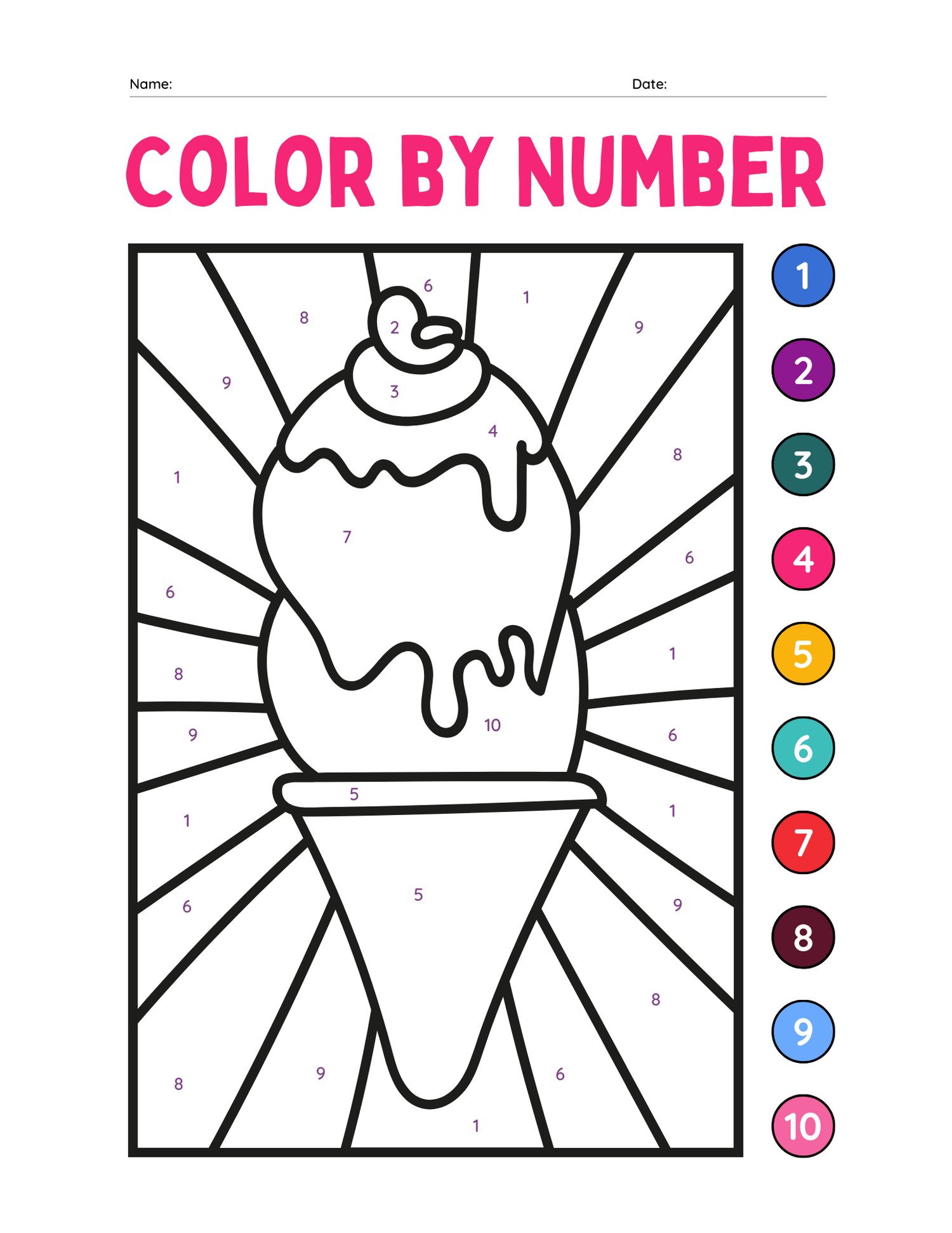This Color by Number worksheet combines number recognition and coloring fun, making learning exciting for young children.