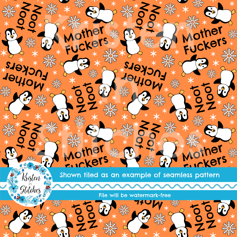Noot Noot Mother Fuckers Swear Word Seamless Pattern, Sarcastic Penguins