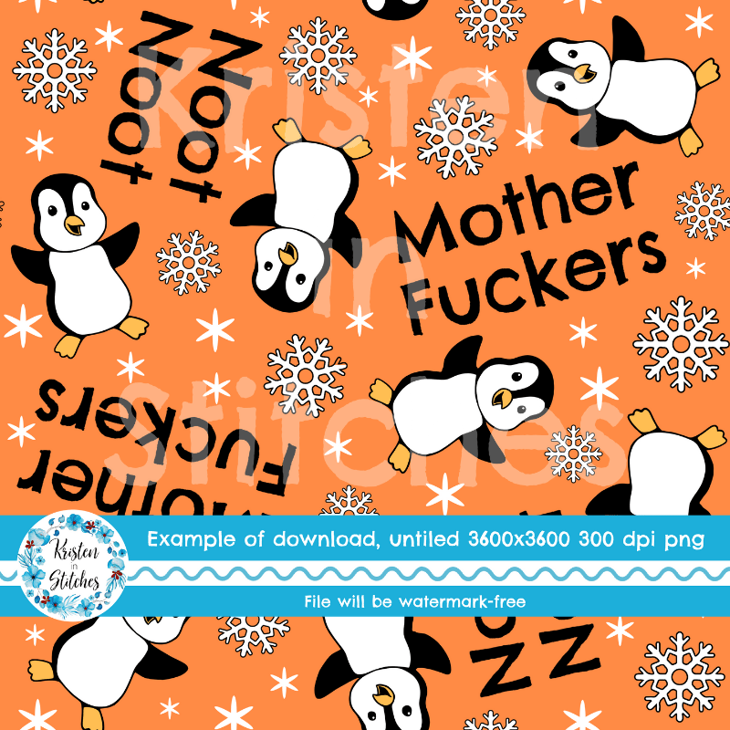 Noot Noot Mother Fuckers sweary seamless pattern with penguins.