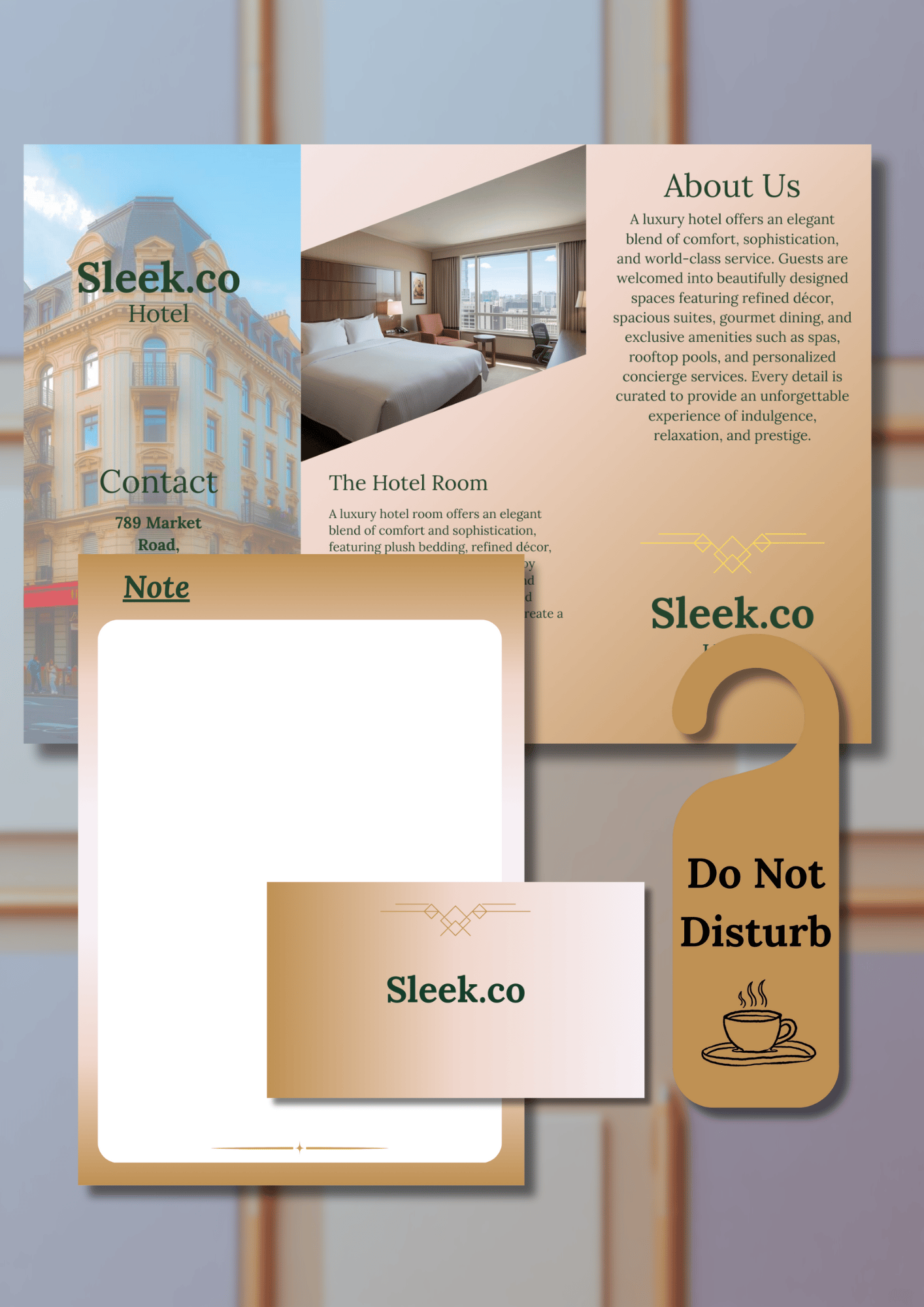 - Hanging Door Sign Design – Elegant “Do Not Disturb” signage to elevate the guest experience.