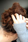 Inspired by the DNA double helix structure, they form a spiral and wind themselves up, leaving a small slit for the thumb – an unusual construction method that keeps you entertained while knitting. The upper and lower opening are both seamed with an I-cord which provides a polished finish and makes it easy to slip in and out of, while the textured surface shines all over the mitts.