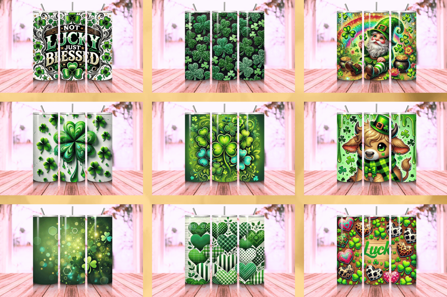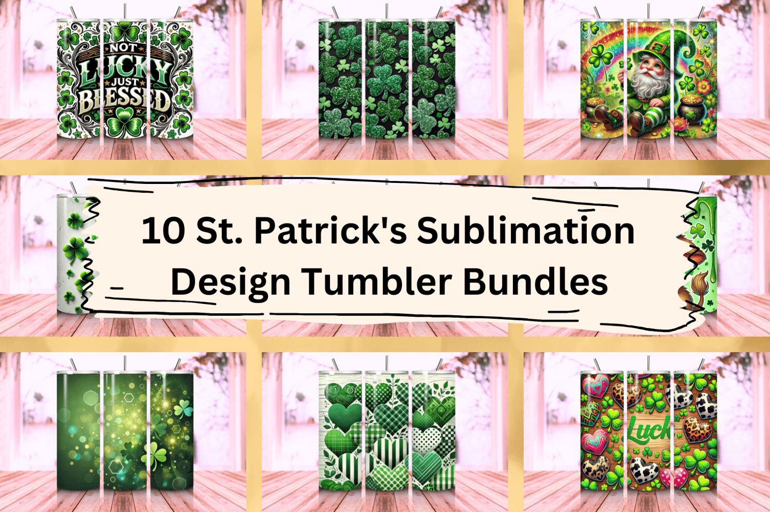 Celebrate the season of luck and joy with this 10 St. Patrick's Sublimation Design Tumbler Bundle, and craft tumblers that bring festive cheer to every sip!