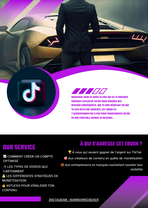 Vous rêvez de créer une source de revenu stable grâce à TikTok ? Cet ebook est fait pour vous ! Découvrez les stratégies éprouvées pour développer un business florissant sur cette plateforme, même si vous partez de zéro. Apprenez à capter l'attention, à vendre vos produits et à générer des revenus rapidement.