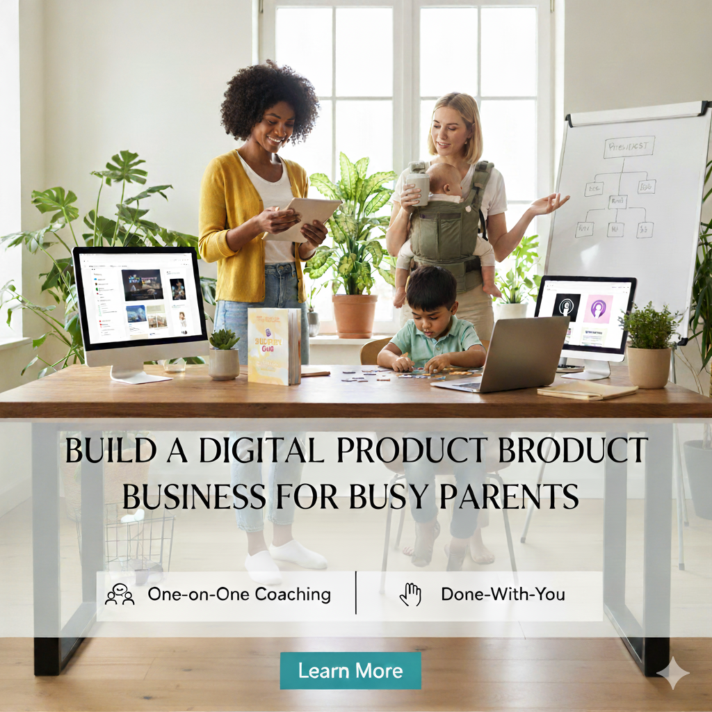 That’s why I created my 1-Month Digital Product Intensive for Busy Parents — a step-by-step, done-with-you program that helps you: