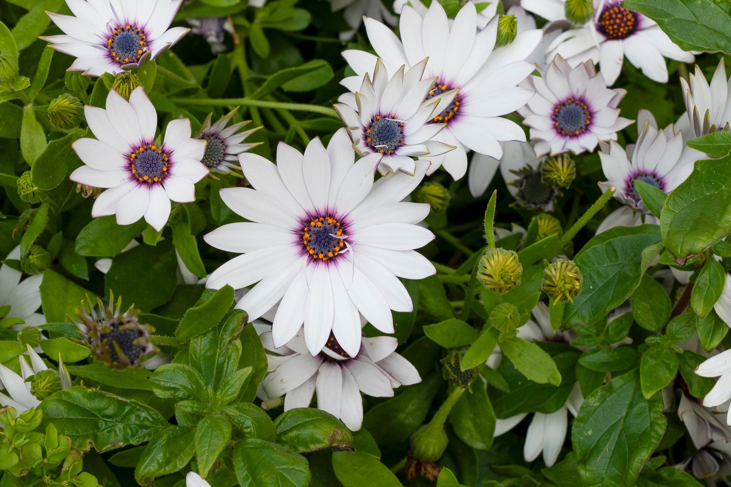 Each African Daisy flower features a center disk of tiny tubular flowers surrounded by fertile, petal-like ray flowers in a variety of colors including shades of white, pink and yellow. In cool summer climates, flowers bloom freely from spring to fall frost.