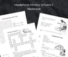 This workbook contains colouring pages for each topic, plus word finds, crosswords, timeline tasks and questions. Works best with our Volume 2 products but can also be used for unit studies and as a springboard to more learning. Reproducible for your family or classroom. $29 plus shipping.