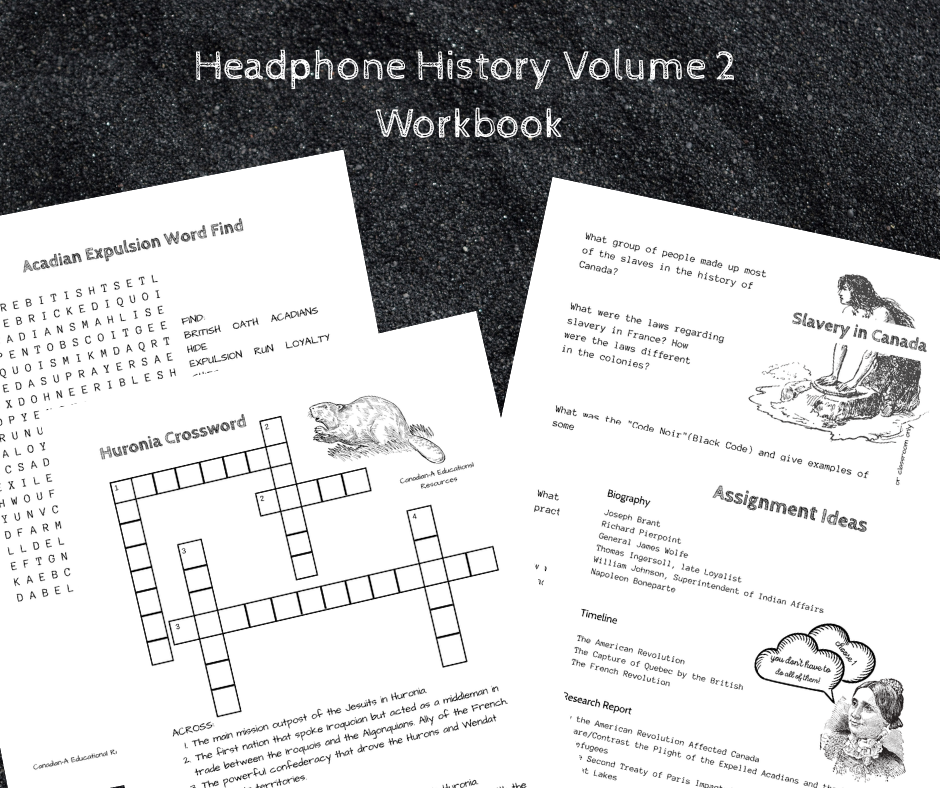 This reproducible paperback workbook pairs perfectly with Headphone History Volume 2 Audio and An Elementary History of Canada Volume 2. The worksheets cover Canada's history from 1670 to 1885 and include topics such as The Haudenosaunee Confederacy, the Destruction of Huronia, New France, The Beaver Wars, Slavery in Canada, Louisbourg Fortress, the Acadian Expulsion, Capture of Quebec and the Plains of Abraham, United Empire Loyalist Refugees, Western Exploration... up to Confederation and the Red River Resistance.