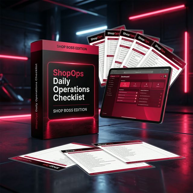 The complete daily operations checklist for Shop Boss users. Includes the full checklist + Companion Guide. Exact, click-by-click workflows to run your shop management system with zero guesswork. 100% platform-specific. Zero generic advice.