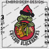 NHL Chicago Blackhawks Team x Grinch Face Holding Ornament Embroidery Designs, Grinch Embroidery Files, NHL Blackhawks Hockey Team Logo Embroidery, Christmas Machine Embroidery Design, Digital Download