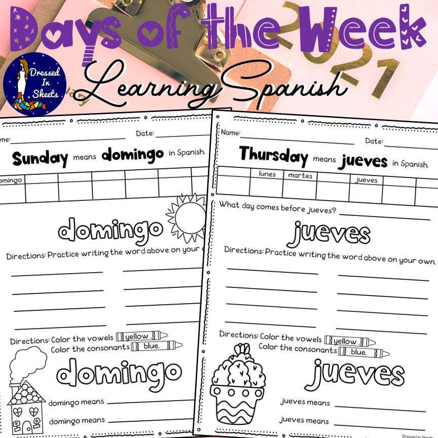 Let’s learn the names of the days of the week! Students will get to practice writing the names of each day, color the vowels and consonants of each, tell what day comes before the named one. Contains two pages to use as a quiz or review.