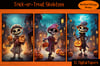 The 12 funny skeletons bring big fun to any Halloween paper project.