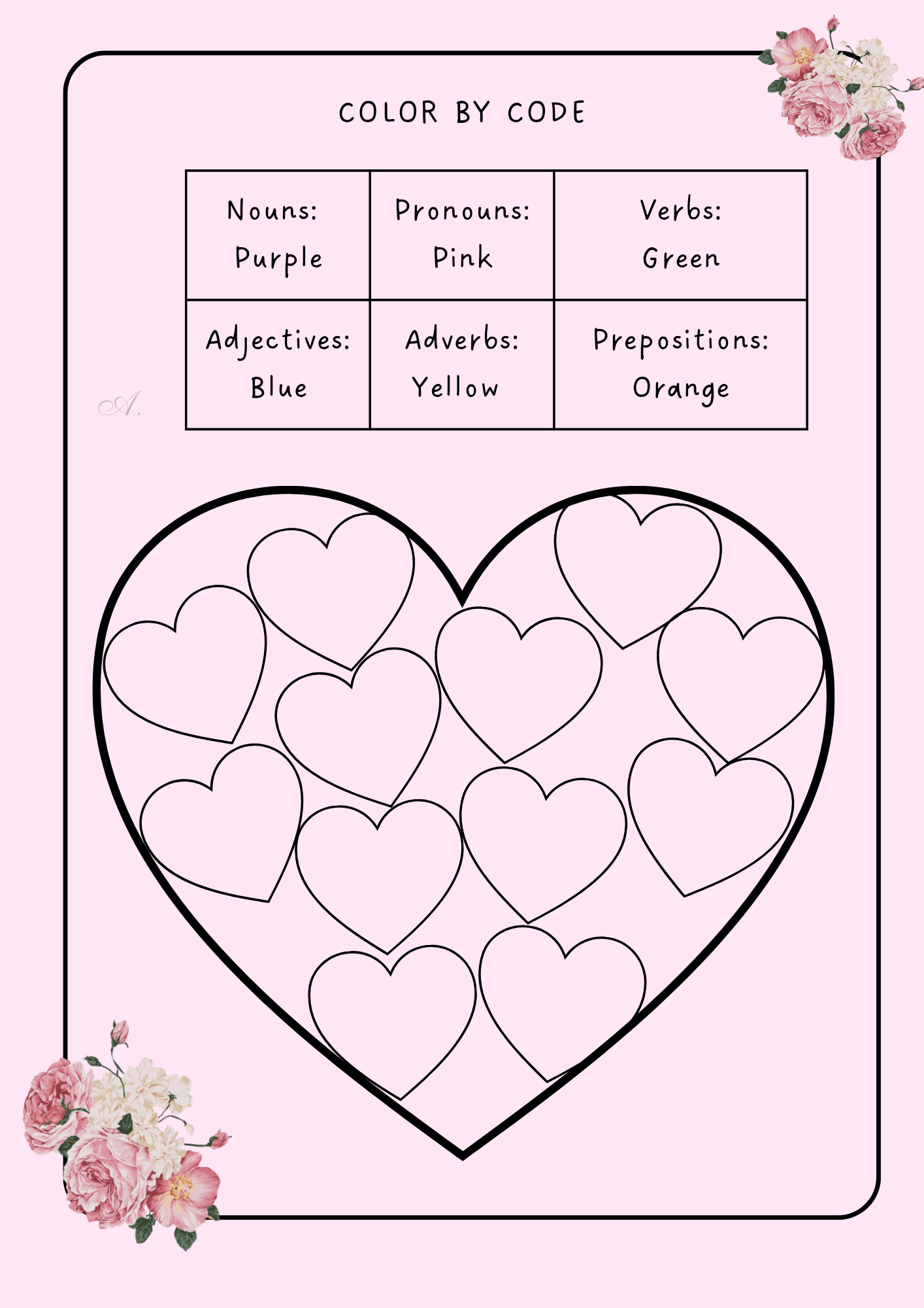(Blank Worksheet) Parts of Speech - Color by Code