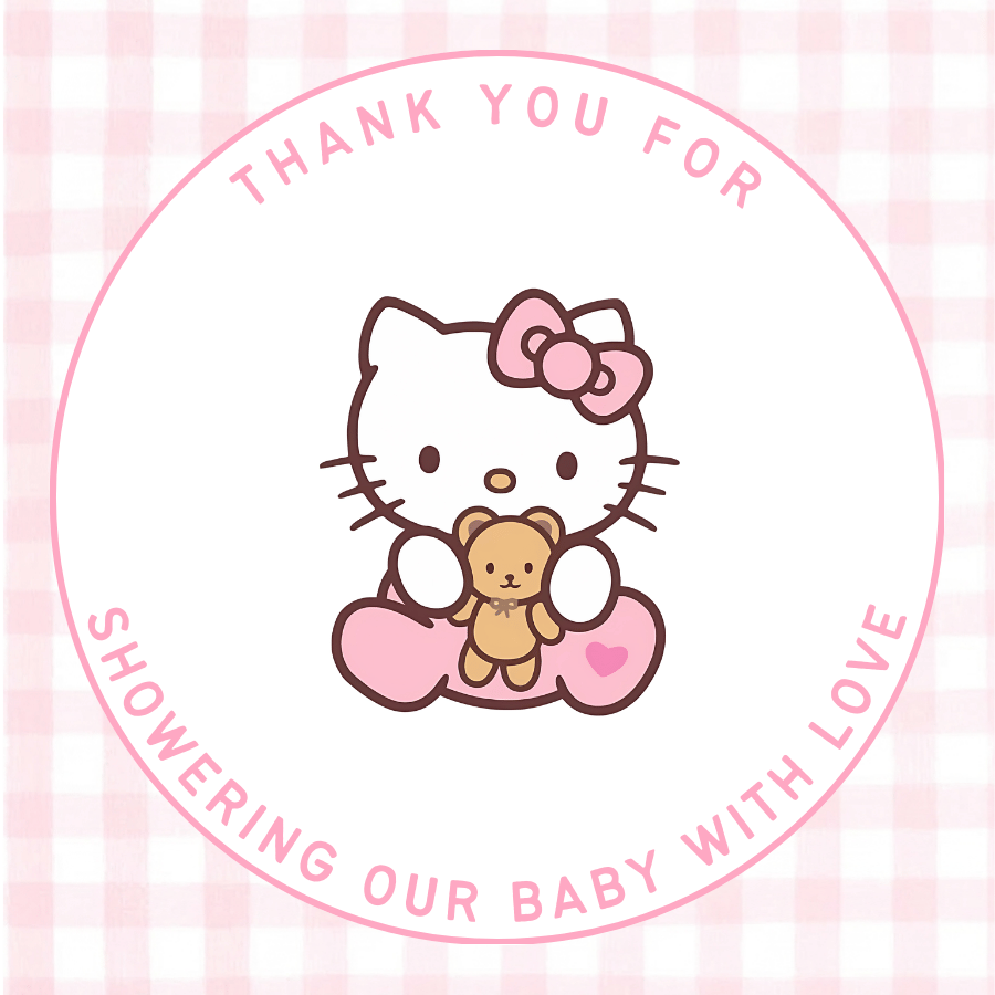 Hello Kitty Baby Shower Round Thank You Stickers