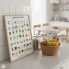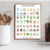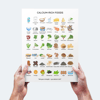 This illustrated calcium food list includes over 60 calcium-rich foods, organized by type: dairy, seafood, greens, legumes, seeds, nuts and fruits. It’s perfect for improving your bone health, meal planning, or following a balanced, calcium-rich diet.