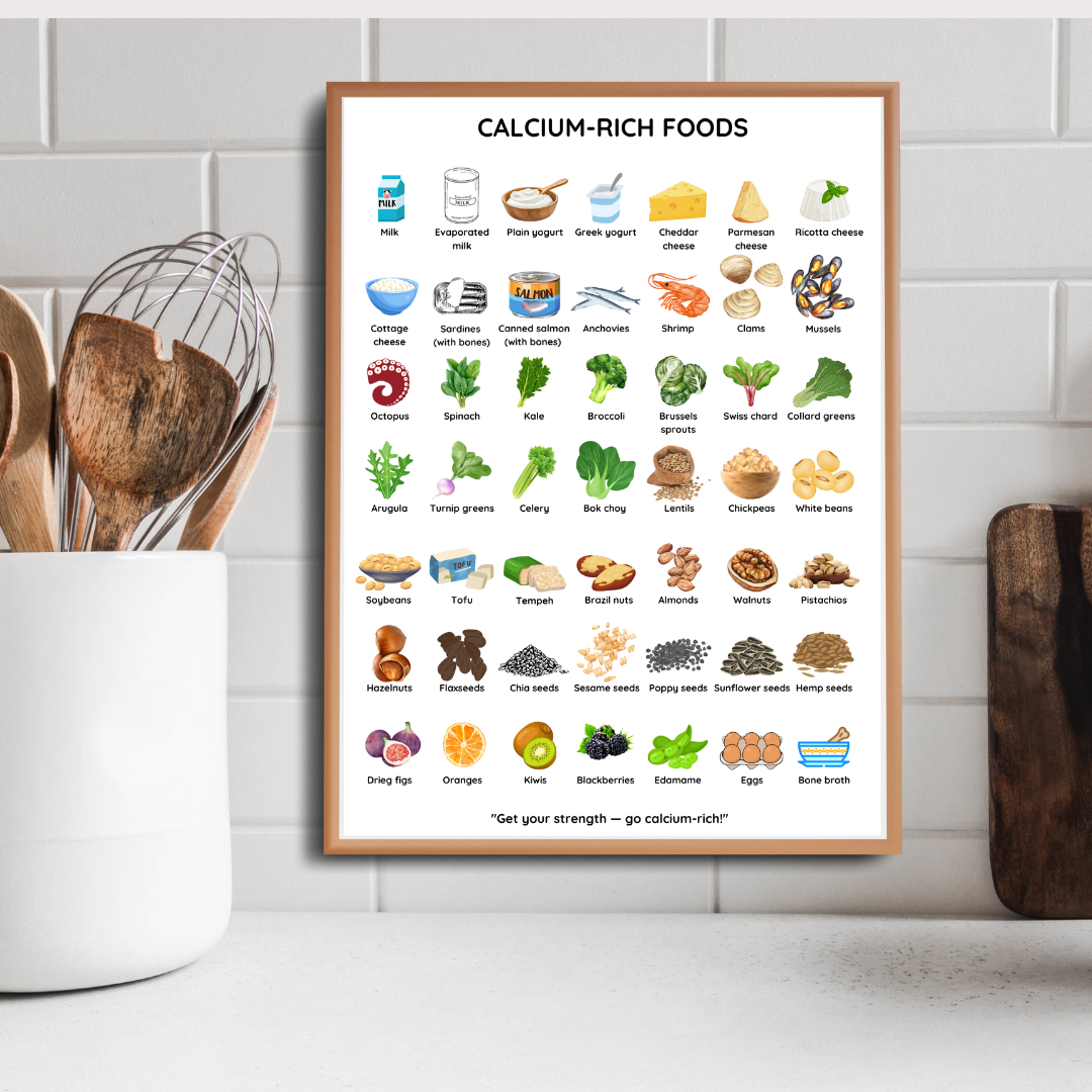 Looking for a clear and practical list of calcium-rich foods? This visual nutrition guide is made for you!