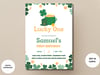 Lucky One First Birthday Thankyou Tag | Shamrock 1st Bday Party Favor Label | Canva Template | Green Boys Printable Paper Stationery