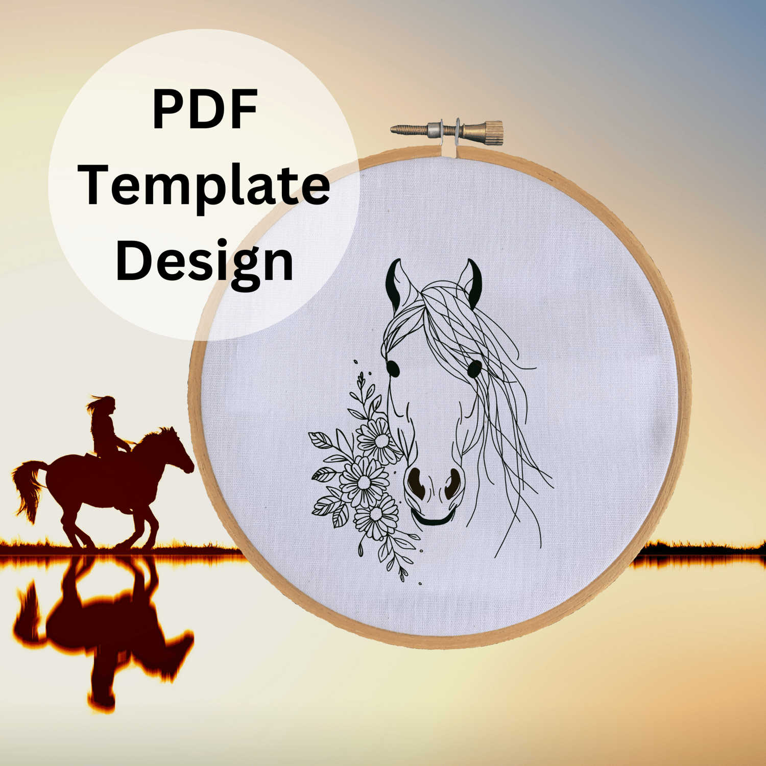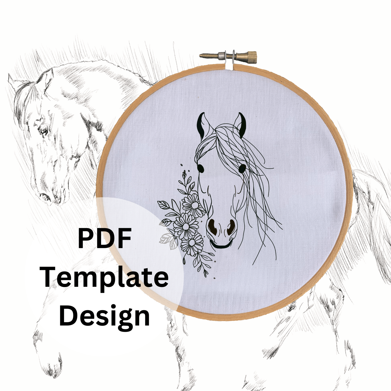 Horse and Flower Hand Embroidery Pattern - DIY Design