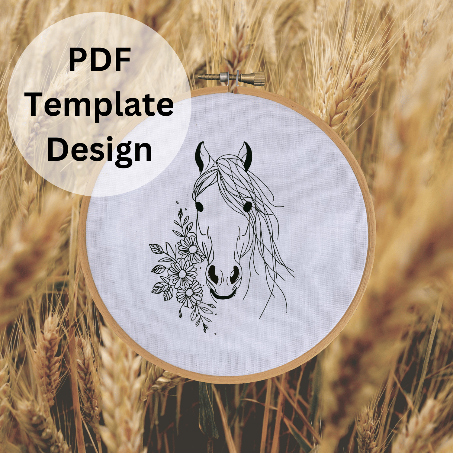 Stitch this beautiful Horse and Flower pattern with this charming hand embroidery project. This project is perfect for beginners and advanced stitchers alike, as it is a simple and fun design that allows you to choose the stitches and colors.
