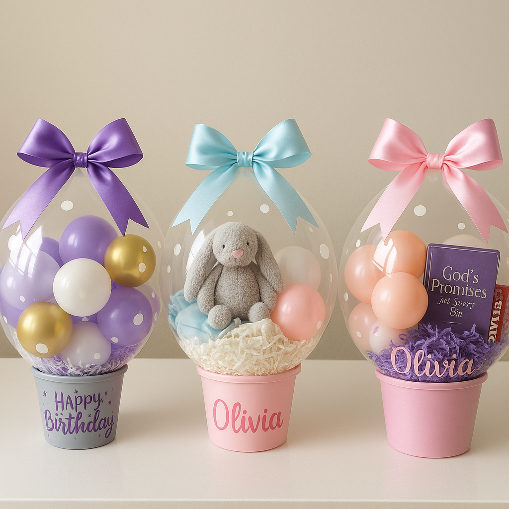🎉 Balloon-Filled Only – Includes a colorful mix of balloons and a customized cup with your choice of name, phrase, or design. Perfect for party favors or cheerful pick-me-ups.