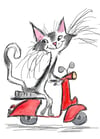 This playful sketch features a confident, joyful cat cruising on a scooter. Whether it's a quick escape or a slow ride through imaginary streets, this piece adds motion, mood, and charm to any space.
