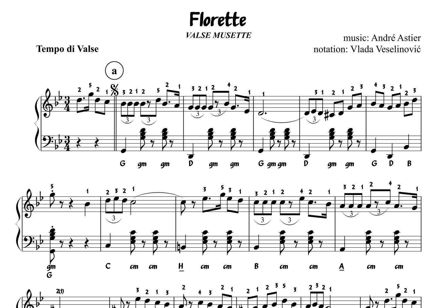 Florette - Valse Musette - accordion sheet music (with fingering for piano accordion)