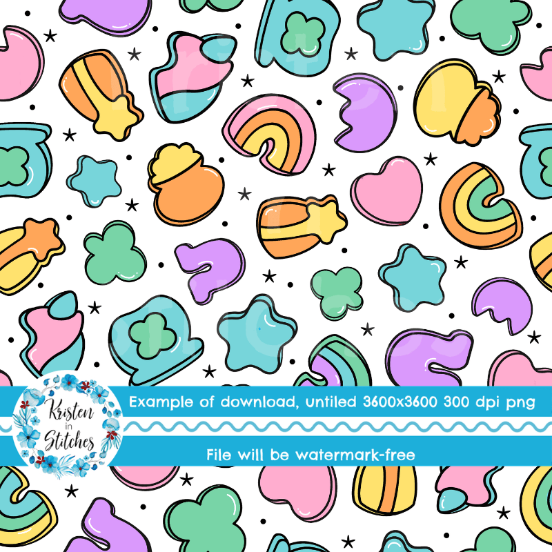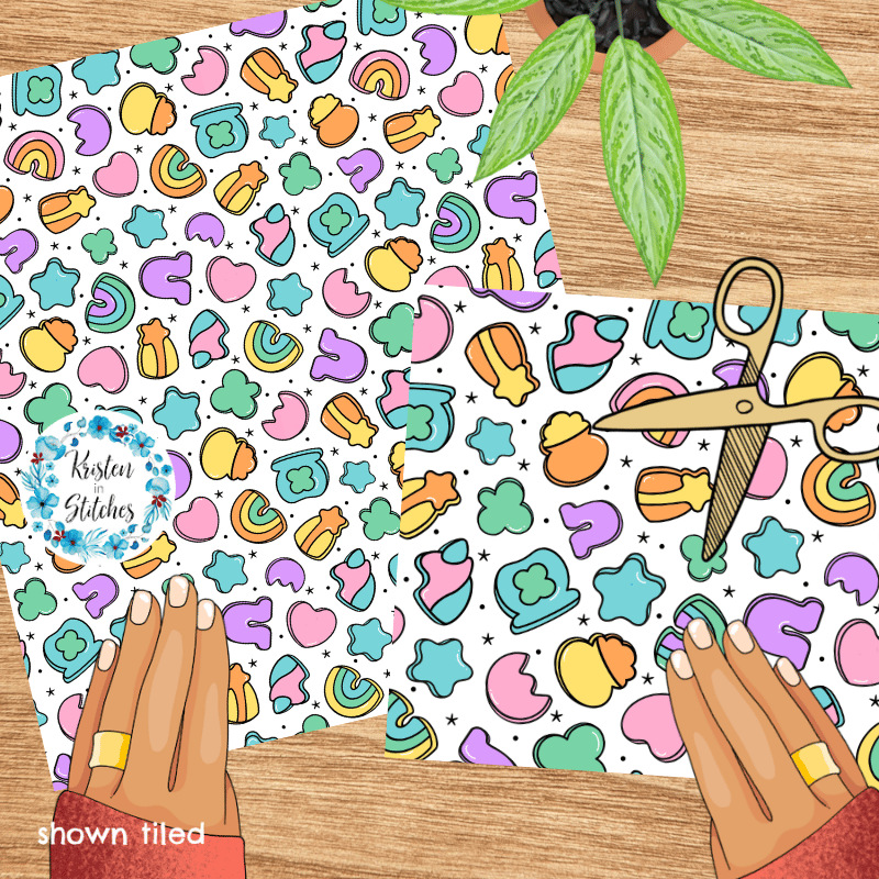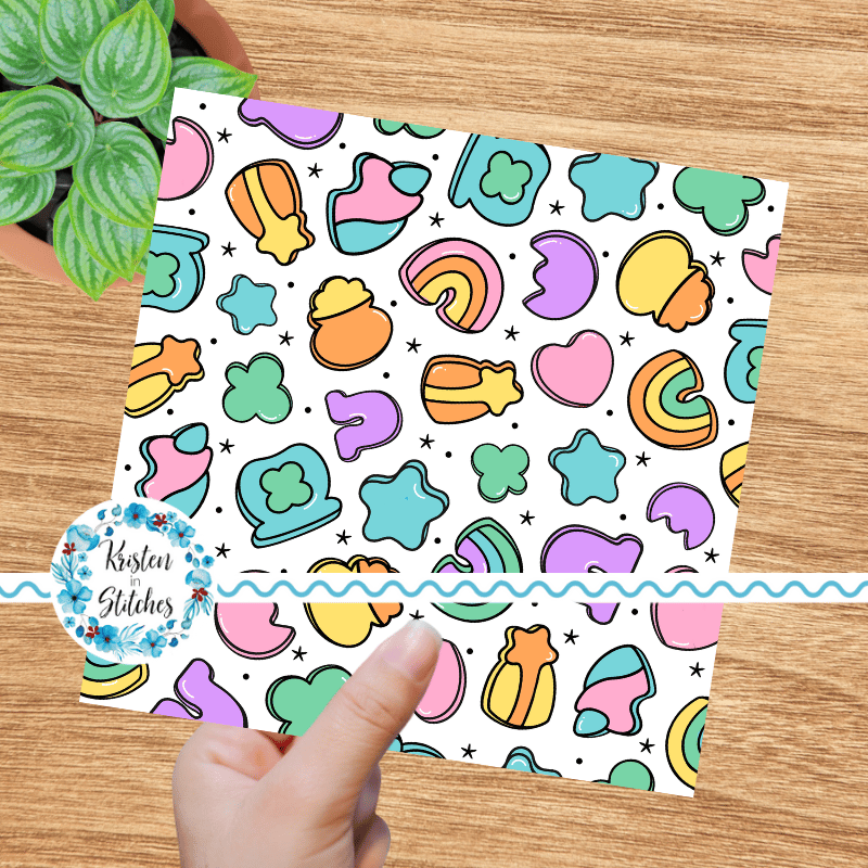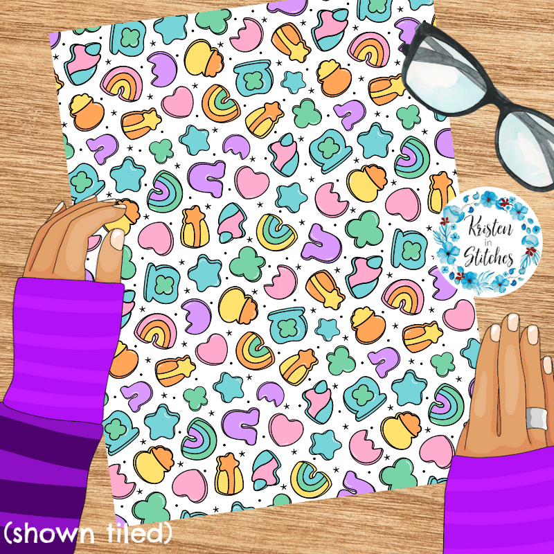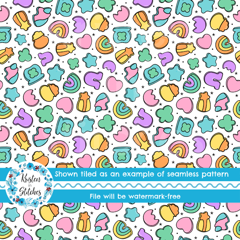 Lucky Charms Seamless Pattern, Saint Patrick's Day Good Luck Shamrocks and Rainbows