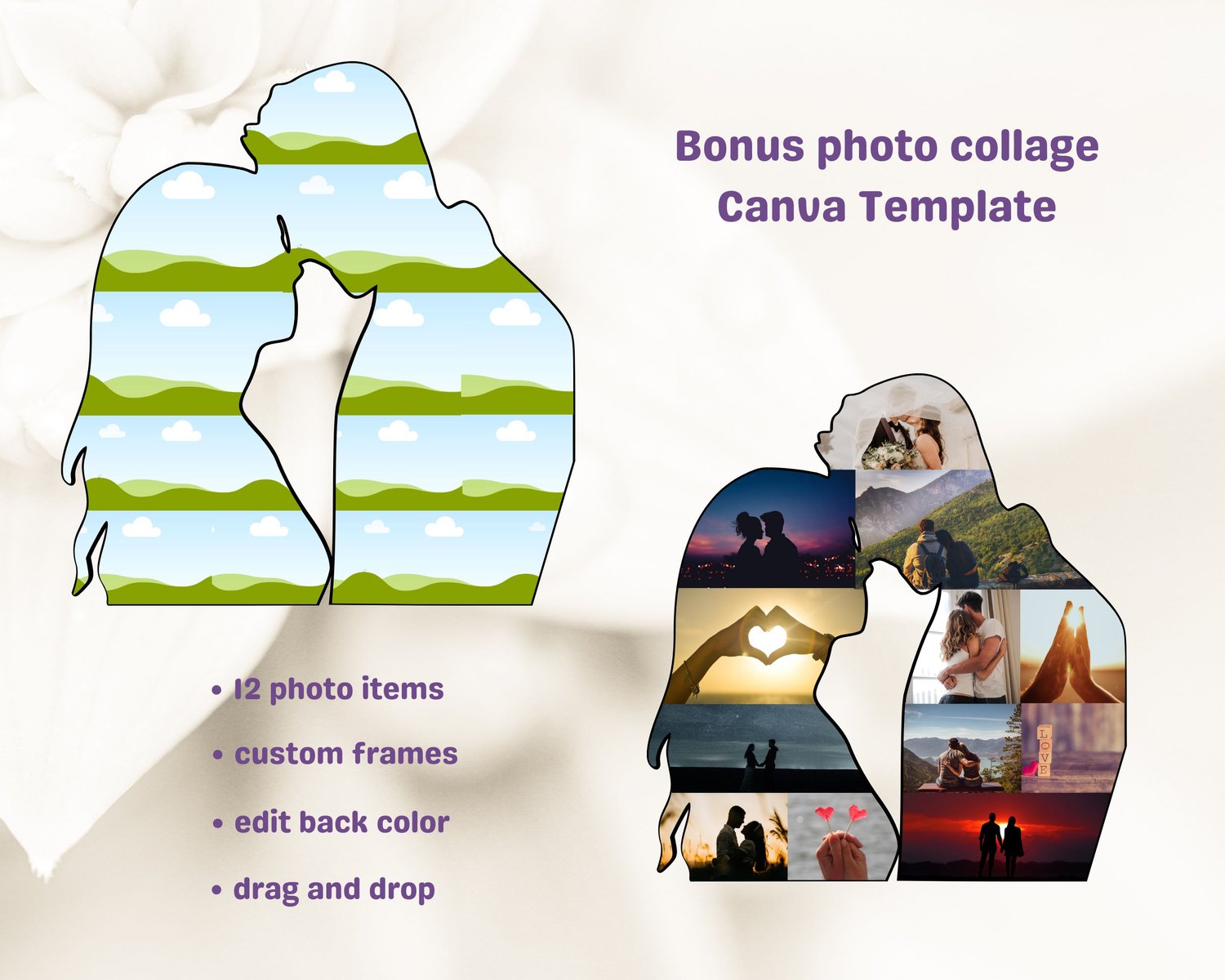 Valentine photo collage Canva template comes with additional Couple Photo Collage with 12 photo frames! Use it in the same way as described above and make your own.