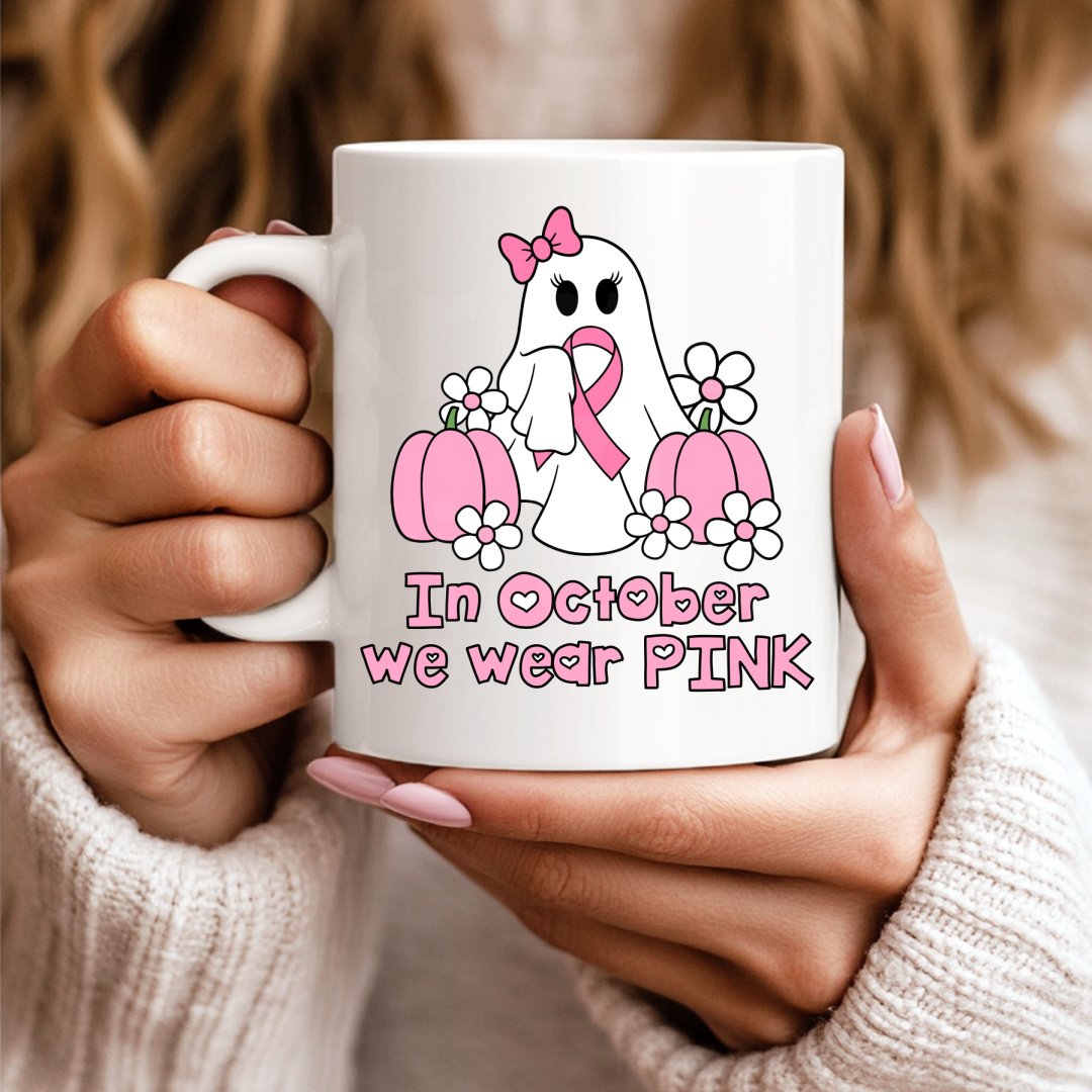 In October We Wear Pink Graphics, Transparent PNG, Panels and Stickers, Awareness Ribbon Ghosts