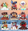 - American Foxhound, Australian Cattle Dog, African Wild Dog, Beagle, Bichon Frise, Border Collie, Brittany, Bulldog, Chow Chow, Corgi (with and without tail), English Setter, Finnish Spitz, French Bulldog, German Shepherd, Golden Retriever, Husky, Irish Water Spaniel, Kooikerhondje, Miniature Pinscher, Otterhound, Papillon, Pekingese, Poodle, Rottweiler, Russel Terrier, Saluki, Shetland Sheepdog, Shiba Inu, Schnauzer, Staffordshire Bull Terrier, Welsh Springer Spaniel, Wire Fox Terrier